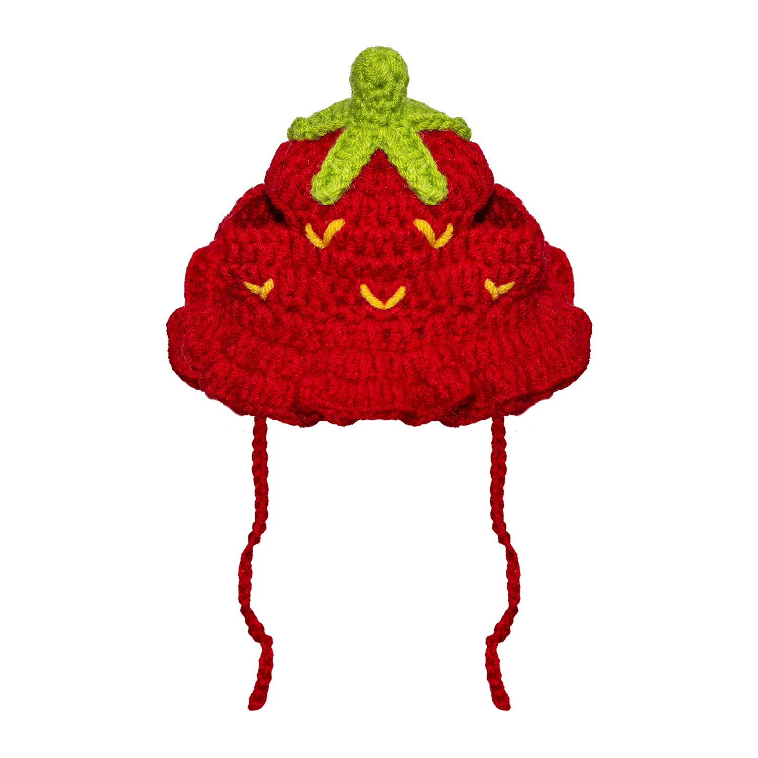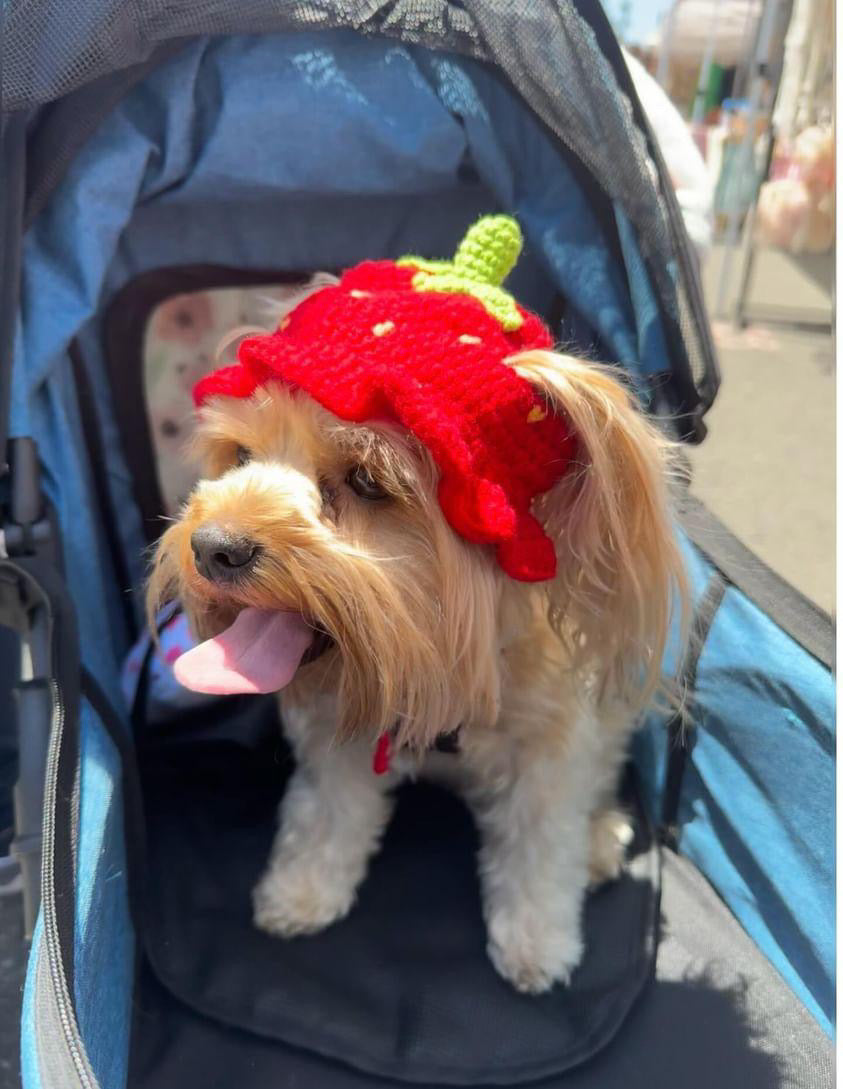 Turn your pet into a berry cute sensation with this charming strawberry crochet hat. Adorned with tiny seeds and a delightful green leaf on top, this hat adds a sweet touch to any outfit. Let your pet wear this juicy accessory and watch as all the neighborhood pets look on with envy.